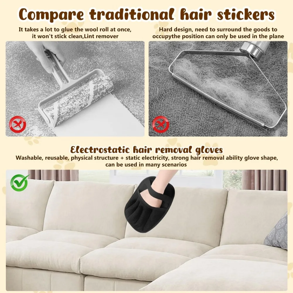• Static Cleaning: The static pet gloves absorb pet hair, lint, and dust through static electricity. Easily glide over furniture and upholstery to easily remove stubborn hair and debris without repeated cleaning or using multiple tools